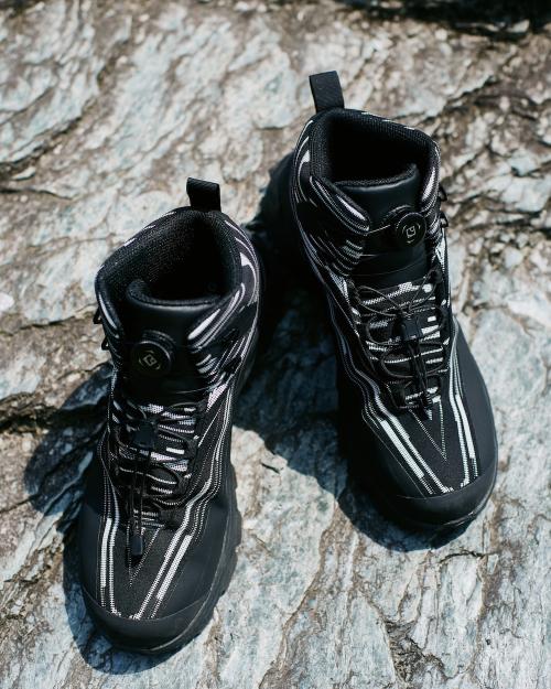 高機能透湿防水素材であるeVentを採用した完全防水仕様で、どんな天候にも難なく対応してくれます。また、着地時の衝撃が直に伝わるヒール部分は衝撃吸収に優れ、前へ蹴り出すつま先側の足底部分は安定感をしっかり確保しています。