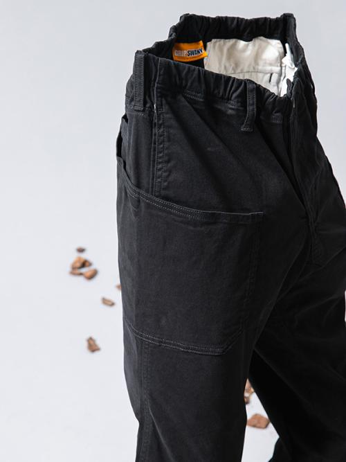 「グリップスワニー」の定番である“CAMP PANTS”をもとに、ウエスト周りの仕様をイージータイプにアレンジした今作。通常のパンツよりも大きなポケットを複数配置しているので、キャンプ道具の収納もバッチリ。