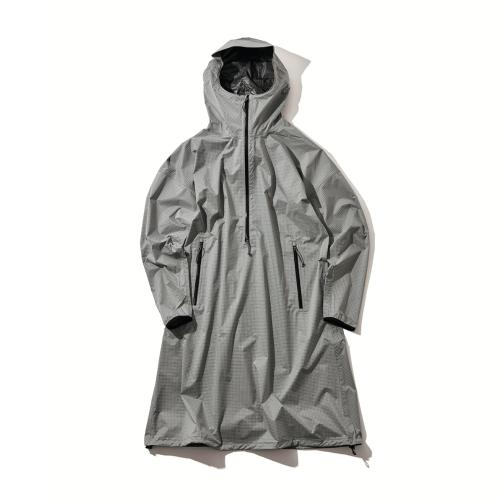防水透湿素材を採用した、アノラック仕様のロングレインコート。腰のジッパーはインナーやパンツに直接アクセスできるスルーポケット。バックパックのヒップベルトを内側に通して留めることもできる。¥35200