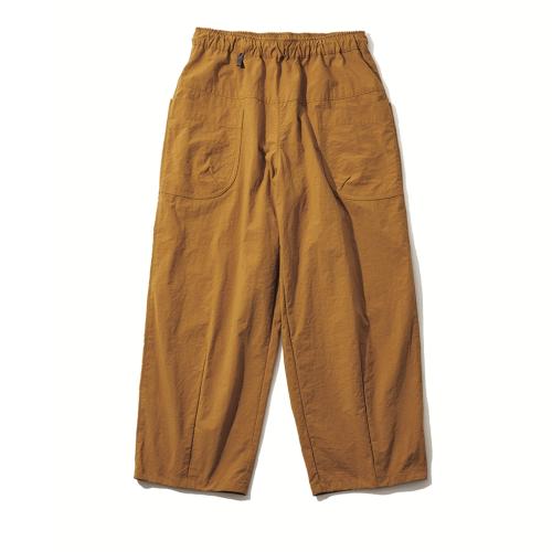 足上げしやすいワイドシルエットだけど、実際に着用するとスッキリ見えるユニセックス仕様のパンツ。防風性や撥水性に優れたナイロン素材ながら、ヴィンテージ加工を施したナチュラルな風合いも魅力。¥23100