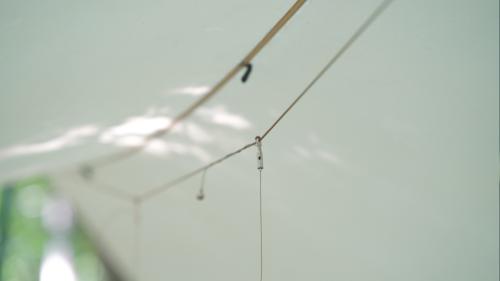 テントやタープの内側に吊り下げることはもちろん、室内ではカーテンレールなどの吊り下げて使うことも可能。シンプルなデザインはインドアにも馴染むこと間違いなし。