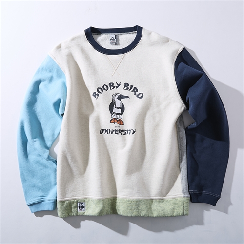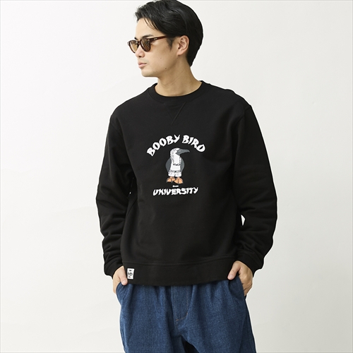 胸元のブービーバードを筆頭に、チャムスをイメージして描き下ろしたアートワークが随所に。USAコットンによる裏パイルのボディは、軽やかなうえに清涼感のある肌触り。