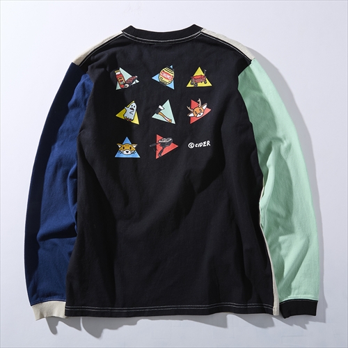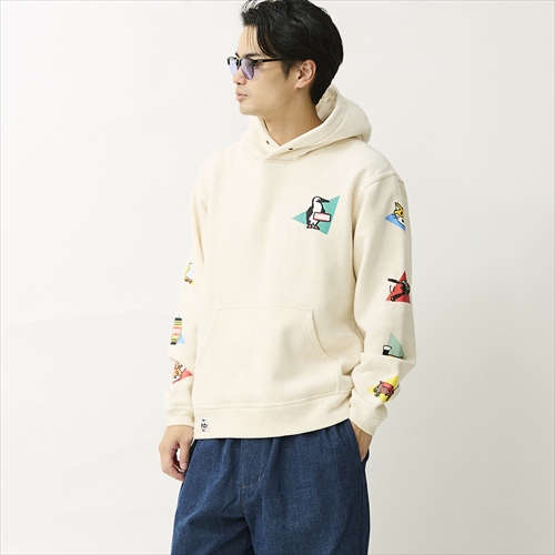 チャムスのシーズンテーマから紐解かれたモチーフを、「かせきさいだぁ」氏が描いてバックにプリント。一枚で着こなしたいロンTは表面に起毛を施した温もりのある質感に。