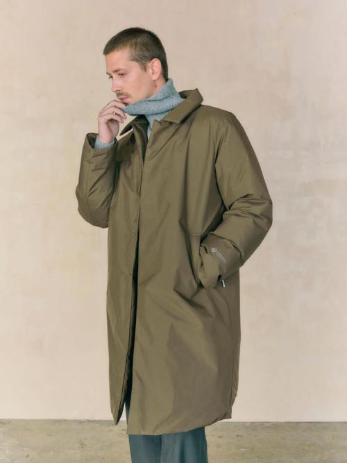 スタンドダウンコートは絶妙な襟の高さでシンプルにすっきり見えるのがこだわりのポイント。立体的なキルティング加工を裏面に施すことで、保温性をより高めており、冬の厳しい寒さにも耐えれる仕様に。