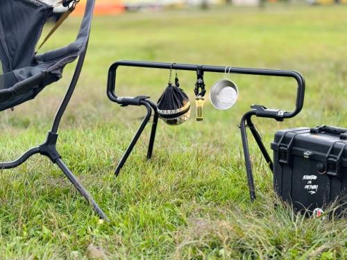 焚き火の際にチェアサイドに置いて、火バサミや火吹き棒を吊るしたり、キャンプの撤収時に洗ったカトラリーを干したりするといった使い方も便利です。