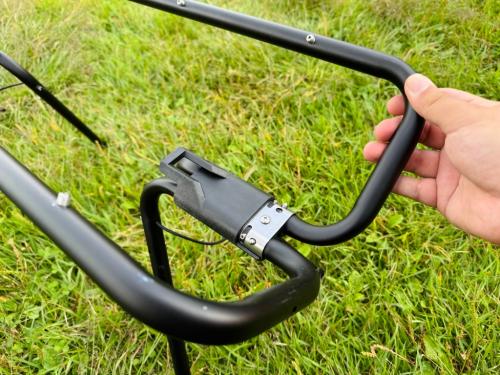 横から見るとV字型に見えるフレーム上部は、段階的に開き角度を変えられる構造になっています。