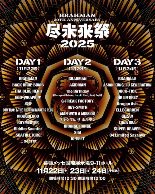 出演は全日程でトリを務めるBRAHMANをはじめ、ASIAN KUNG-FU GENERATION、ELLEGARDEN、Dragon Ash、SUPER BEAVER、The Birthday、SCAFULL KINGなど28バンドとシークレットゲストも登場!