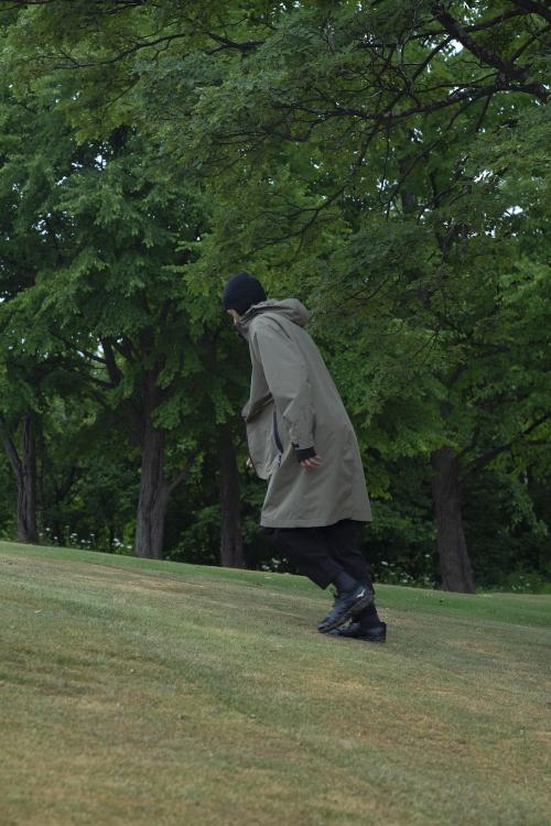ポリエステルポプリン素材のコートは、腰ポケットに圧着ファスナーを採用したスポーティなディテールも好ポイント。フロントの逆開ファスナーで様々なスタイリングを楽しめる仕様に。