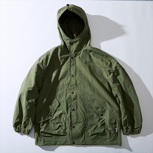 ダブル構造に仕上げたポケットで荷物が小分けでき、袖口のリブ使いによって風の侵入をシャットアウト。裾に設けたドローコードを絞ると、シルエットのアレンジが楽しめます。
