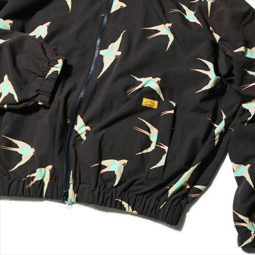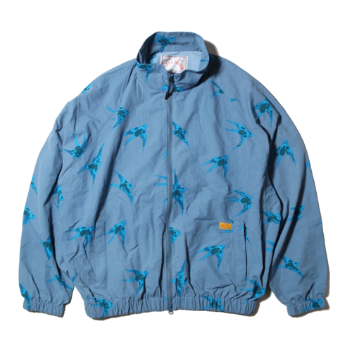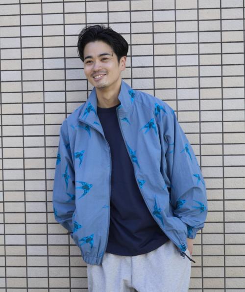 ジップタイプのシンプルなデザインに仕上げ、ツバメのモチーフを落とし込んだ総柄パターンを主張。独自のナイロン生地はシワになりにくく、折り畳んで持ち運べるのも魅力。