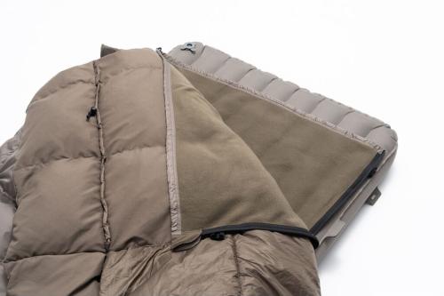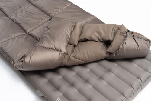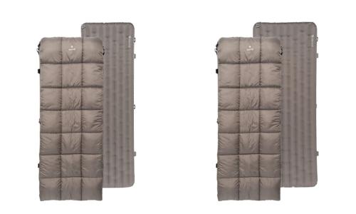 その新モデル“システムオフトンシリーズ”は、2025年5月にリリースされた厚手の就寝用エアマット“コンパクトマットシリーズ”がセットになっていて、“掛け布団”の中綿の素材が化繊とダウンの2種類、それぞれスリムとワイドの2サイズ展開で、合計4モデル。さらにオプションアイテムとして、フリース生地を採用したインナーシュラフ“オフトン ウォームアダプター”もラインナップしている。