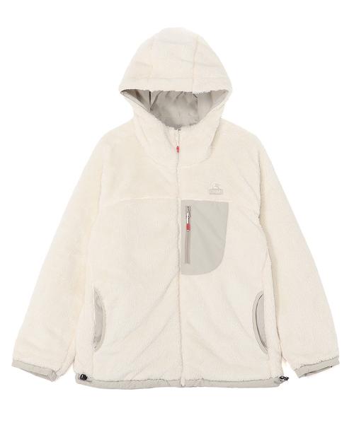 GORE-TEX®︎ 素材と毛足の長いフリースを組み合わせた、リバーシブル仕様のフード付きジャケット。モコモコした柔らかなファブリックが身体を包み込んでくれます。フードなしのモデルも展開されています。