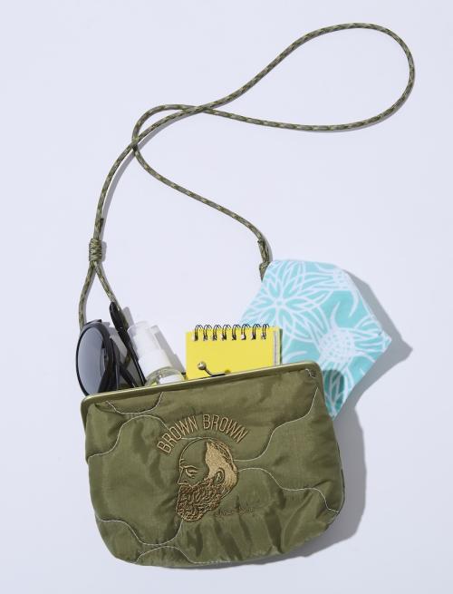 フロントには同ブランドのアイコン的存在である“Mr.Brown”を大胆にステッチ。ベースとなる光沢感のある生地と馴染むように、滑らかな質感が生まれるように丁寧な刺繍が施されています。