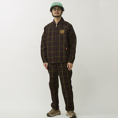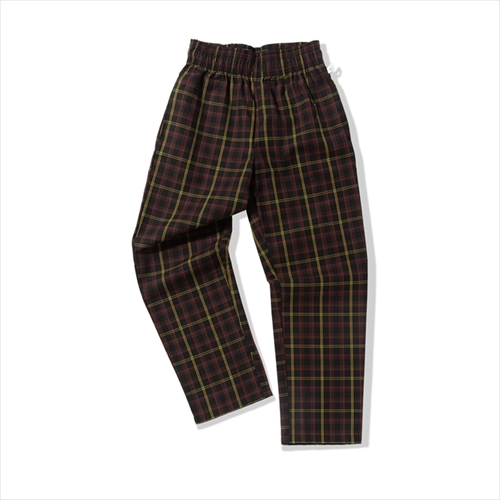 アメリカの老舗バーガーブランドとのコラボにより、ラフに穿きこなせるシェフパンツが気品あふれるチェック柄に。裾まわりがややルーズなリラックス感のあるシルエット。