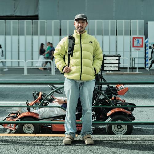 ザ・ノース・フェイスの渡邊さんは、発色のいいネオンカラーのミニマルなダウンジャケットを、デイリーウエアとしてセレクト。