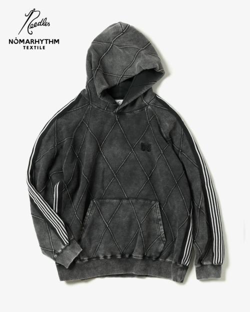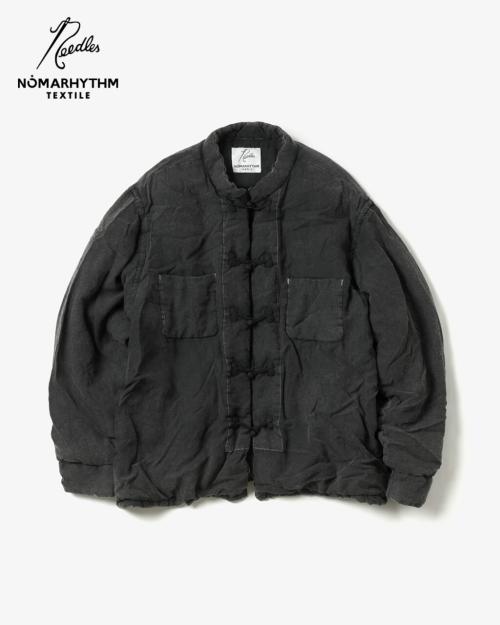 ダイヤモンドステッチを施したスウェット素材を採用し、後染めによる奥行きある表情とサイドラインが際立つ“TRACK HOODY &TRACK PANT”をはじめ、後染めを施した中綿ジャケットに「NEEDLES」のアーカイブであるチャイナシャツのディテールを落とし込んだ“HAND DYE PUFFER CHINA SHIRT”が登場。