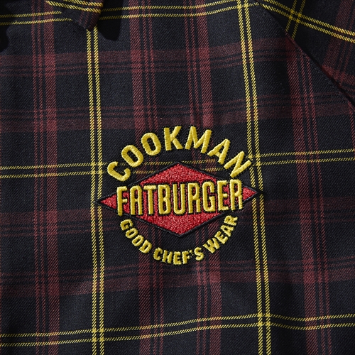 無駄のないシンプルなデザインにより、タータンチェックのマルチな色使いを引き立てたワークジャケット。老舗バーガーブランドとコラボした共作モデルだけのロゴが胸元に。