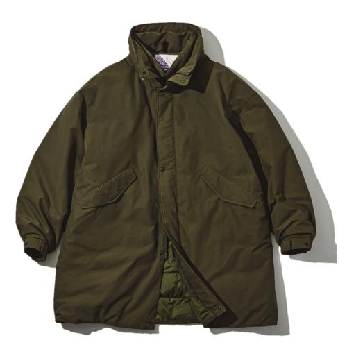 オーガニックコットンと、クラシックアウトドアスタイルの定番素材、グログランクロスを組み合わせ、撥水加工で機能性をプラスした。中綿は光電子ダウンで、スタンドカラーは首元を暖める二重襟仕様に。¥72600