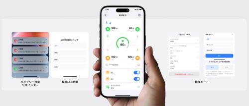 「BLUETTI」のアプリと連携し、Bluetooth経由でライトの操作や電源管理もスマートフォンからコントロール可能。UltraCell