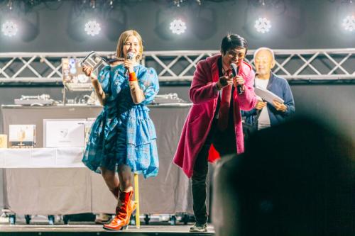 その後、ステージではテントなどの豪華景品が当たる参加者全員対象のプレゼント抽選会とフォークダンスを実施。フォークダンスでは主催の斉藤ふみさんもステージから降りて参加者と交流を深めました。