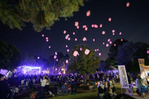 イベントも終盤、日が暮れた頃に訪れた本イベントのハイライトが、スカイランタン飛ばし。事前に願い事を書いた短冊を紙風船にくくりつけ、一斉に解き放つという参加型コンテンツ。