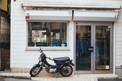 日本のファッション発信地と言える東京の渋谷と原宿を結ぶキャットストリートから一本裏の路地へと入った場所にある古着店ROB。オーナーの栗原聖也さんは最近入手したというヤマハのメイトに夢中だそう。「この車両はフリマサイトで見つけて購入したんですけど、静岡まで引き取りに行ってそのまま自走で帰ってきました。大きな幹線道路はちょっと非力ですけど、やっぱりバイクは気持ちがいいですね」。