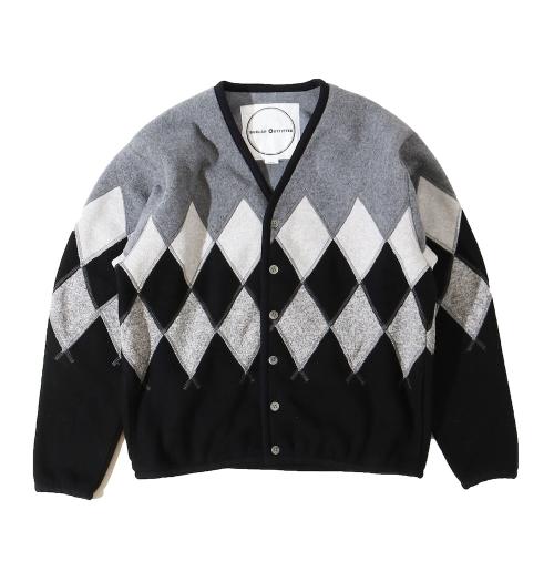 USミリタリーサープラスのフリースをふんだんに使用したカーディガン。フラットシームで、手のかかるパッチワーク技術をあえて採用し、細やかなアーガイル柄を表現しています。ゆったりとしたシルエットなので、スウェットやフーディの上からサッと羽織るのが良さそうです。