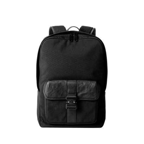 メイン素材にはコーデュラの糸から仕立てた“500Dスパンライクナイロン”を採用。適度なハリ感とコットンのような毛羽立ち感のあるテクスチャーが自然な風合いをかもしている。これに前面ポケットのフラップなどを牛革であてがいモダンな装いにアレンジ。
