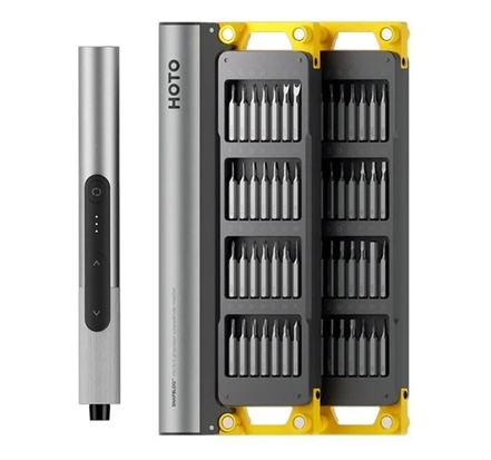 小型機器から大型家具まで対応する、計56種類のビットがセットになった電動ドライバー。転がりを防ぐうえに快適なグリップ性を発揮する人間工学に基づいた形状に。