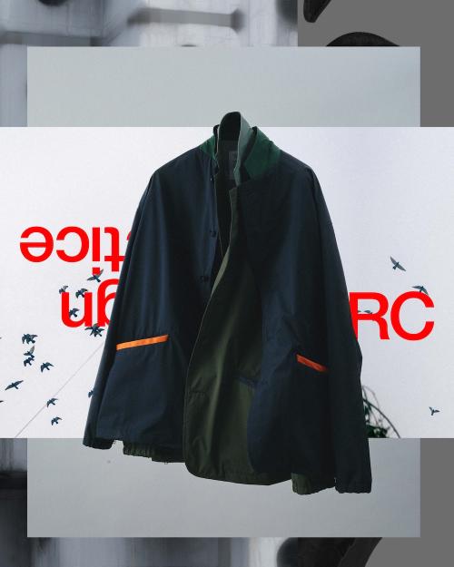 また、フロントのポケット口と襟裏に配色を施すことで、形態変化に合わせて色のアクセントをプラス。袖口のカフスの裏側にはボタンを配しているので、シルエットの調整が自在です。さらに、両脇にはジップが備わっているので、通気性や可動域もバッチリ。