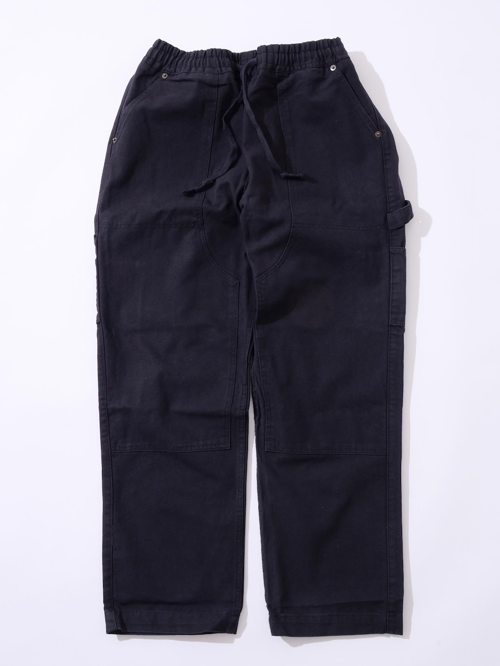こちらはワークウエアではお馴染みのディテールであるダブルニーを用いたモデル。リベットは腰回りに配しているので、ワークパンツのような無骨さが軽減されます。