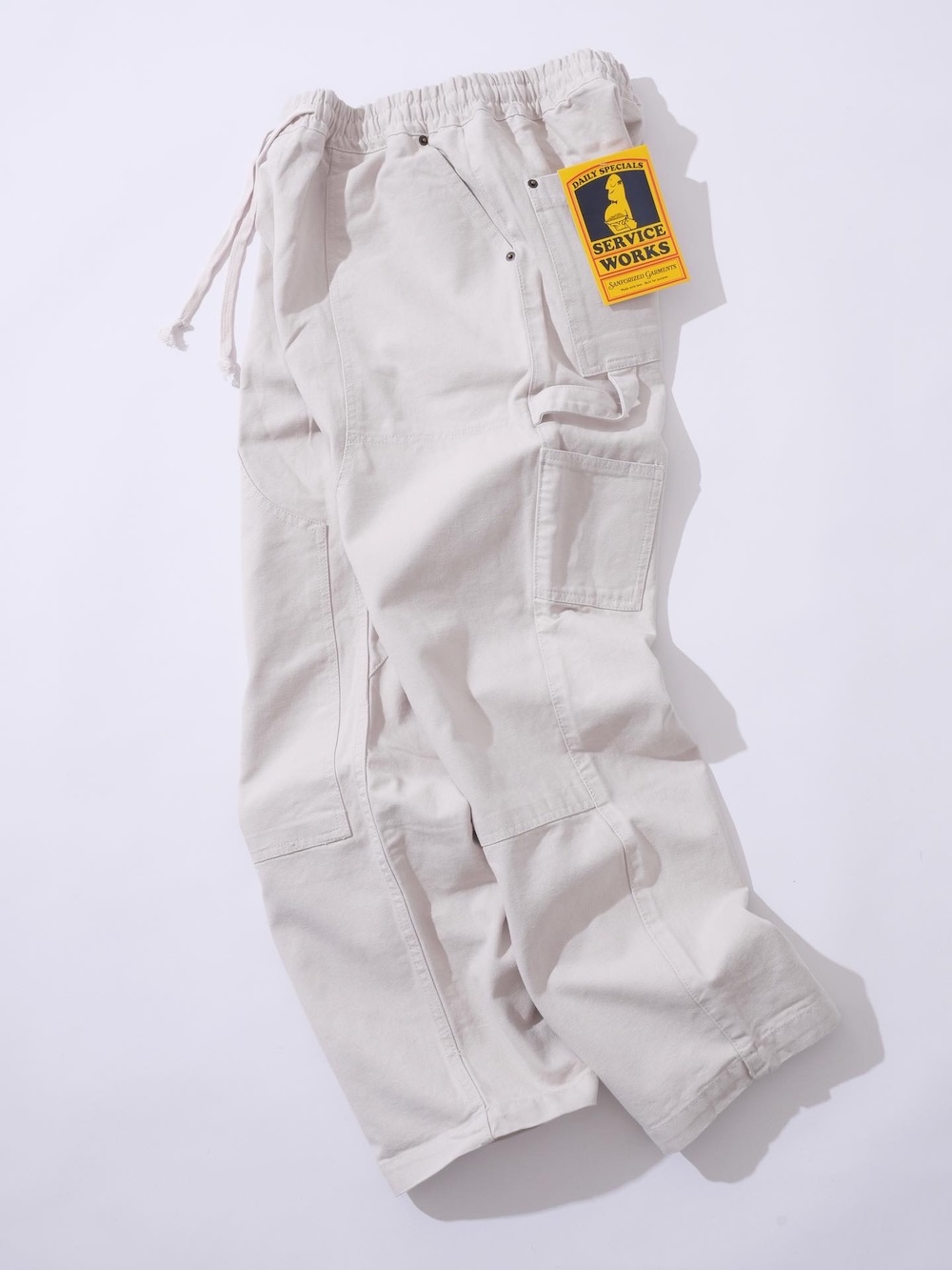 「厨房からスケートまで」。サービスワークスのシェフパンツは、ダブルニーの変わり種!