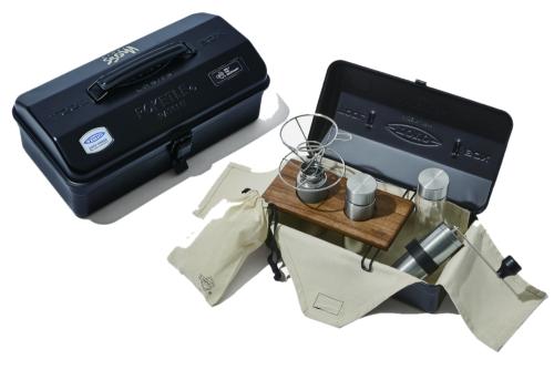 見た目は無骨なスチール製の工具箱だけど、中身はコーヒーセット。金属加工の聖地、燕三条で製造された本格的なコーヒーミルとドリッパーを収納でき、どこでも挽きたての美味しいドリップコーヒーが味わえる。¥27500