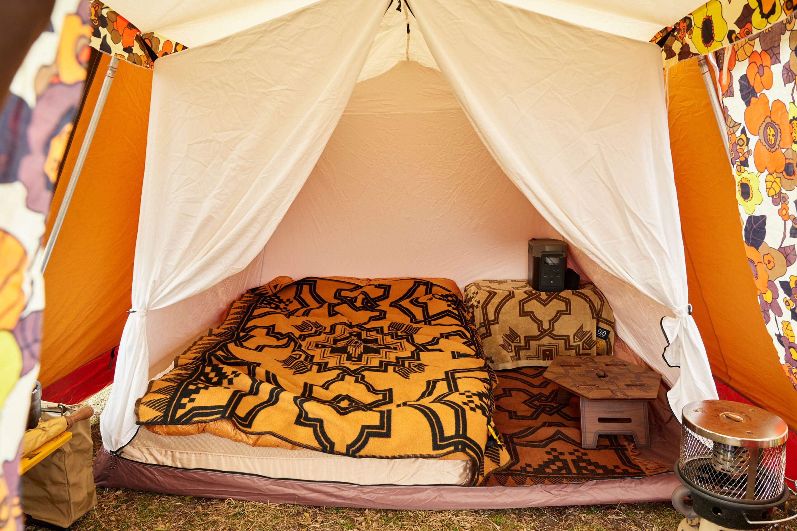 レトロなコットンテントは、見た目も暖かさも妥協なし!