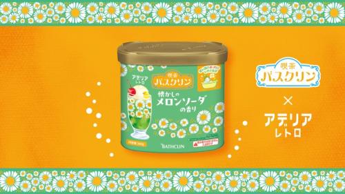 まずは『懐かしのメロンソーダの香り』。“昭和レトロ”を代表するグラスウェアブランド「アデリアレトロ」とコラボした、見た目も楽しい入浴料です。どこか懐かしいメロンソーダの香りに、今どきのかわいいパッケージがぴったりマッチ。昔ながらの味わいを楽しみつつ、新しい気分も味わえるアイテムですよ。