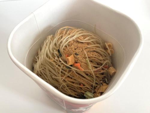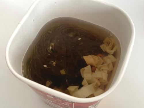 お湯を入れる前に、春雨と粉末スープ、かやくをカップに入れます。すでに、粉末スープからは八角を中心とした華やかな香りが!これはもうワクワクが止まりません。