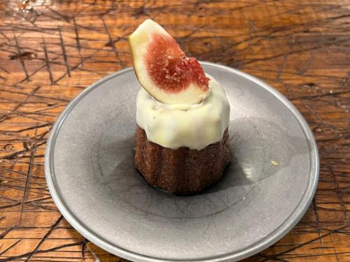 そしてこちらは気になった期間限定の『イチジクのカヌレ』(税込500円)。カヌレは外側はハードな食感で、中は生地が詰まっているようなもっちりとした噛み応え。卵の旨みと特有の香ばしさがイチジクととてもよく合っていました。