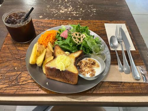 ムー、サラダ、ポテト、ヨーグルトとプレートセットはとてもボリューミーで、モーニングとしてだけでなく、ブランチ、ランチにもおすすめですよ。