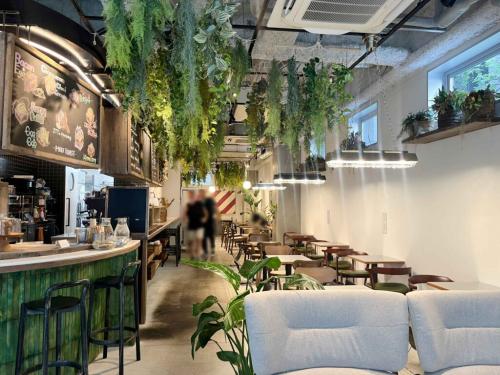 店内は緑を感じるオシャレでシックな造り。ところどころに花もあしらわれ、上品な空間となっています。