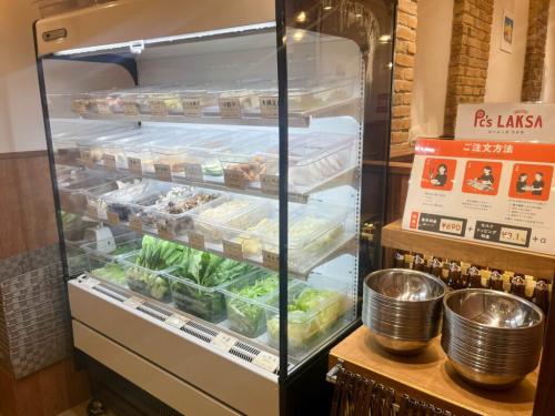こちらでは具のトッピングを自由に選ぶことができるということで、店の奥に向かうと……いま流行りのマーラータンのお店にあるような具材の棚を発見!