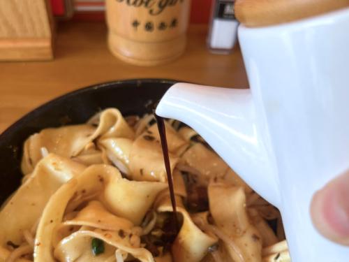 卓上には、ほかにも『醋』と書かれた黒酢が置かれていて、さっぱりとしたコクと酸味がさらに奥深い味わいにしてくれました。