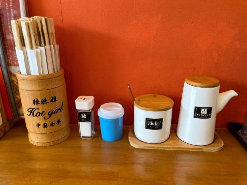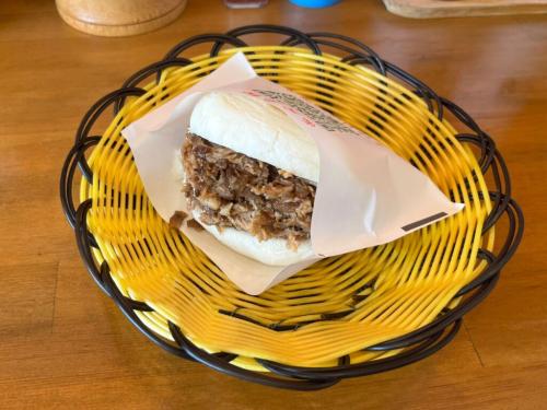 ふわふわのパンの間には、豚肉の旨みと甘みが引き立つように、醬油ベースのタレでしっかり煮込まれた具がたっぷり。食べるたびに肉汁が口の中で弾けます。お肉はとろけるような部分と噛み応えのある部分があり、肉をガッツリ食べたい!という時にぴったり。こちらも『辣椒』や『醋』がよく合います。𰻞𰻞麺でお腹がいっぱいだったのに、味変を楽しむうちにぺろりと完食していました。