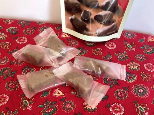 こちらは蜜漬けしたりんごにブランデーで香りをつけ、ミルクチョコレートでコーティングしたお菓子。りんごの酸味とチョコの甘さの組み合わせが特徴です。
