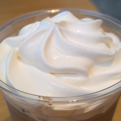 上にのったクリームは濃厚で、混ぜながら飲むと、まろやかな甘さが広がります。デザート感覚でも楽しめる満足度の高い一杯。