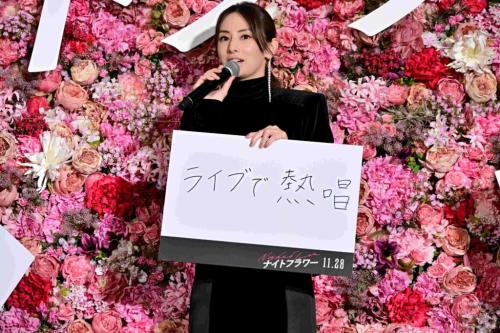 大学⽣の娘の素⾏に悩む総合病院の院⻑夫⼈・星崎みゆき役の田中は「とにかく皆さんが素晴らしくて圧倒されて、スクリーンから目が離せないと思います」と予告し、北川演じる永島夏希に感情移入して号泣したことを報告。そんな北川の撮影時の様子について佐久間が「景子さんは切り替えが凄い」と言うと、北川は「全然重い気持ちにならなかった」とケロリ。森田も「泣く直前までケラケラと喋っていてスタートした瞬間、ウワーと泣かれてカットがかかってまたケラケラとなるタイプ。それが何回も出来るから…本当に怖いなと思った」と証言すると、光石は「女優は怖い」とポツリと呟いて、それを佐久間が「北川景子が怖い!」と強調して場内爆笑となった。