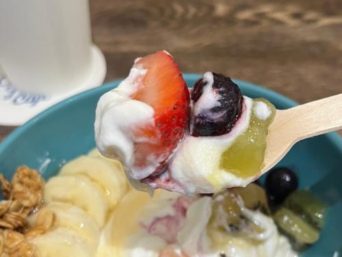 メニューを見てどうしても食べたくなった『フレッシュフルーツたっぷりのグリークヨーグルトボウル』(税込1,100円)も注文。こちらは、高タンパク質・低カロリー・腹持ちが良い・腸内環境の改善・筋肉の維持など、魅力満載のデザートです。