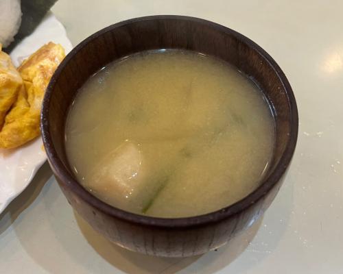 みそ汁の具は、ワカメ、ネギ、お麩が入っていました。