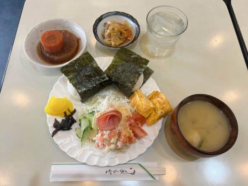 注文したのは『おにぎりモーニング』。おにぎりが2つ乗ったワンプレートのみかと思ったら、いろいろ付いてきて、なかなかのボリュームに。これで税込980円とは驚きです!