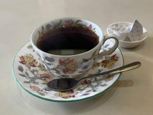 そろそろ食べ終わる、という頃に奥さんから「ブレンドコーヒー淹れますね」との声が。一杯ずつ丁寧に淹れてくださるようで、待っていると、このような素敵なカップに入ったコーヒーが登場。この味わいがまた朝にぴったりなコク深さ。お腹いっぱいになった体に染みわたっていきます。
