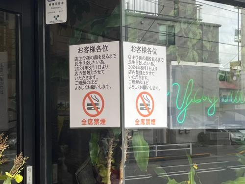 お腹も心も大満足になり、お店を出て振り返ると、このような注意書きが。ひ孫さんのためにも元気にお店を続けていだたきたいですね。